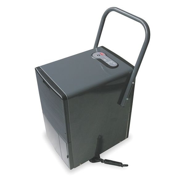 Industrial Portable Dehumidifier, Capacity/24 Hrs. @ 60 Percent RH 57 pt, Bucket Capacity 9 pt, Voltage 115V, 60 Hz, 7.3 Amps, 188 Fan CFM, Humidity Range 30 to 90 RH, Ambient Temp. Range 41 to 90 Degrees F, Fan Speed 1, Height 23 5/16 in, Width 12 11/16 in, Depth 17 7/8 in, Cabinet Material Steel, Color Gray, Defrost Type Normal, Refrigerant Type R-410 A, Power Cord Length 10 ft