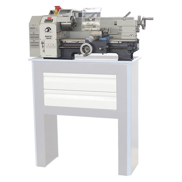 Lathe, Distance Between Centers 12 in, Voltage 115V AC, Horsepower 7/8 hp, Min. Spindle Speed 150 RPM, Application Metal Turning, Overall Height 14 1/4 in, Overall Length 33 in, Overall Width 33 in, Max. Spindle Speed 2,500 RPM, Tailstock Taper MT2