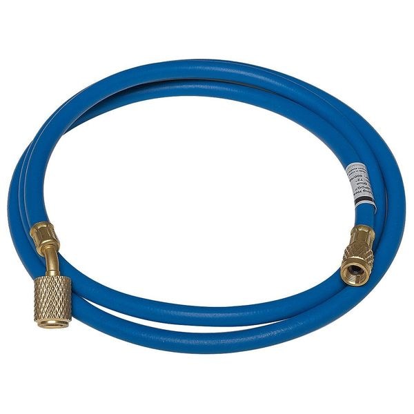 Low Side Hose, Connection Size 1/4 in Female, 30 Degrees Angle, Number of Hoses 1, Length 72 in, Color Blue, Hose Material Rubber, Working Pressure 800 psi, Burst Pressure 4,000 psi, For Use With Refrigerant Manifold Gauge Sets, Features Auto Shut-Off Connections