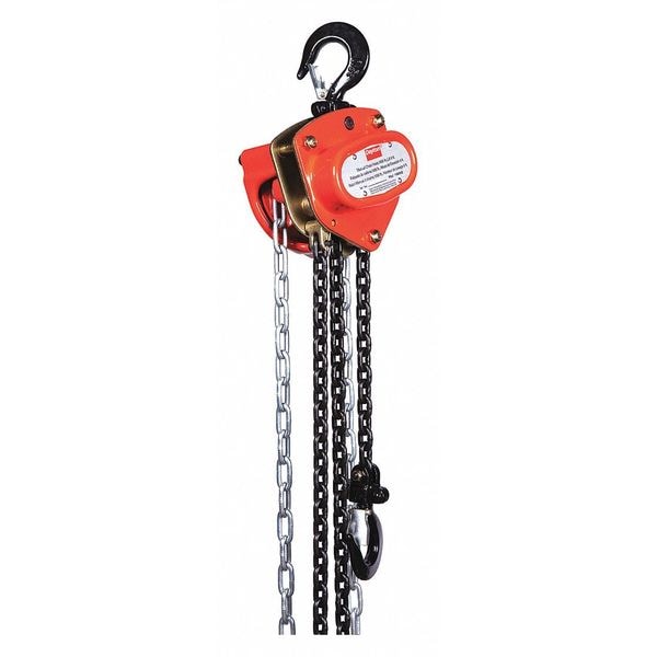 Manual Chain Hoist, Chain Length 8 5/8 ft, For Minimum Beam Flange Width Not Applicable, For Maximum Beam Flange Width Not Applicable, Headroom 11 1/2 in, Includes Brake Brake Included, Lifting Hook Type Hook with Safety Latch, Maximum Lifting Capacity 1,000 lb, Maximum Lifting Length 8 ft, Mount Type Hook Mounted - No Trolley, Body Depth 4 15/16 in, Body Material Steel, Body Width 5 1/8 in, Brake Type Double Disc Brake, Weston Style, Chain Grade Grade 80, Chain Material Alloy Steel, Color Red