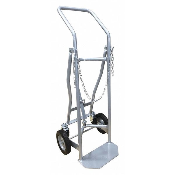 1, Overall Height 48 in, Overall Width 19 1/2 in, Overall Depth 16 7/8 in, Load Capacity 500 lb, Securing Mechanism Chain, Caster/Wheel Configuration (2) Axle-Mounted, Axle-Mounted Wheel Type Pneumatic, Axle-Mounted Wheel/Tread Material Rubber, Axle-Mounted Wheel Dia. 8 in, Handle Type Continuous Frame Flow-Back, Frame Material Steel, Overall HxWxD 48 in x 19 1/2 in x 16 7/8, Axle-Mounted Wheel Type/Material Pneumatic Rubber