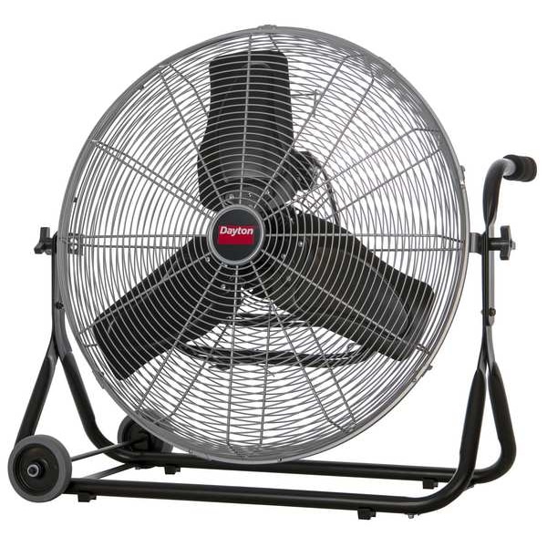 Mobile Floor Fan, Overall Style - Fans Mobile, Fan Mounting Location Floor, Number of Speeds 3, Non-Oscillating, Fan Cord Length 9 ft, Fan Power Source Plug-In, 235/275/330 W Watts, 1500/1300/1150 RPM RPM, Number of Blades 3, 2.7/2.2/2.0 A Amps, Height 29 in, Width 30 in, 60 Hz Hz, Bearing Type Ball, Blade Material Aluminum, Steel, 3, 5-15P, Silver, cULus Listed E19455, OSHA Compliant Wire Guards, Carrying Handle
