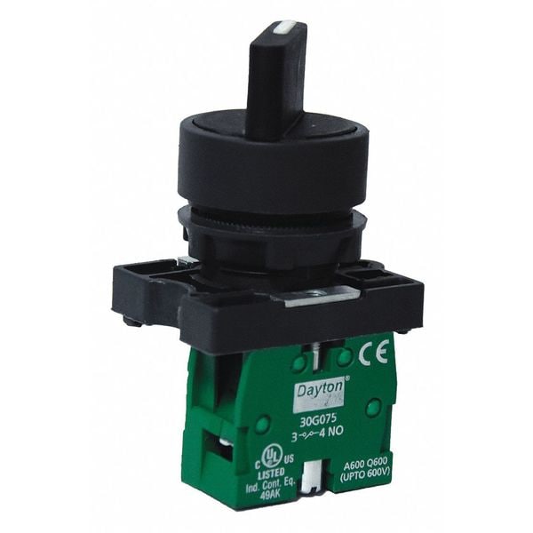 Selector Switch, 22 mm, 2 Position, Maintained/Maintained Action, 1NO Contact Form, Type of Operator Lever, Color Black, No Key Key Removal, Operator Head Material Plastic, Basic Material Plastic, Bezel Material Plastic, Bezel Color Silver, Contact Rating 10A @ 600V AC, 2.5A @ 600DC, NEMA Contact Rating Designation A600/Q600, NEMA Rating 1, 2, 3, 4, 4X, IP Rating IP65, Cam No Cam Included, Switch Operation @ Position A O, Switch Operation @ Position B X