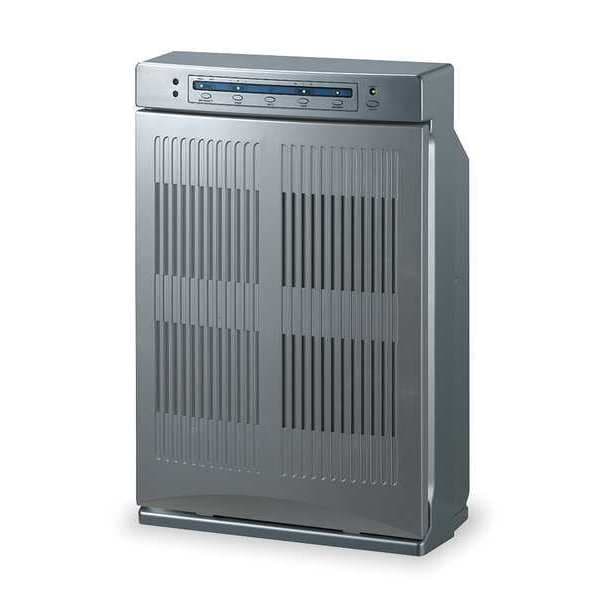 Portable Air Cleaner, 5-Stage with HEPA and UV, Number of Speeds 3, Air Flow (CFM) 41/68/197, Sound Level dBA 68, Voltage 120V AC, 60 Hz, Single Phase, 120 W Watts, Height (In.) 24 3/4 in, Width (In.) 16 7/16 in, Depth (In.) 9 1/2 in, Plastic Finish, Gray, Includes Remote Control, Cord Length (Ft.) 6, Agency Compliance UL, Overall Dimensions - H x W x D 24-3/4 in x 16-7/16 in x 9-1/2 in