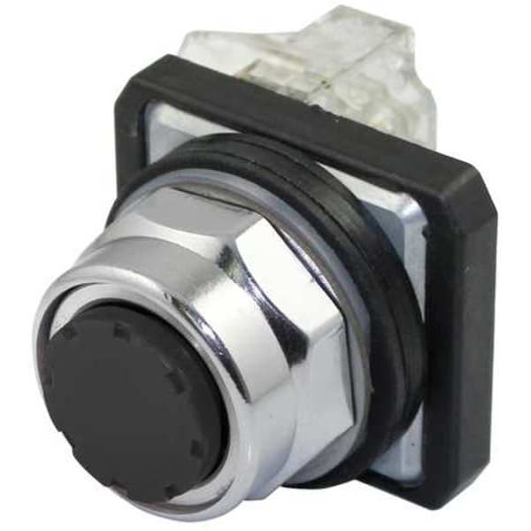 Extended Push Button Operator, 30 mm, Momentary Action, Extended Button Type of Operator, Head Material Metal, Contact Form 1NO/1NC, Bezel Chrome Die Cast Aluminum, Color Black, Contact Rating 10A @ 600V AC, NEMA Contact Rating Designation A600/Q600, Number of Operators 1, NEMA Rating 13, 4, Legend No Legend, Standards CE, CSA, UL Listed, Terminal Connection Pressure Plate, Material Metal