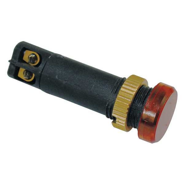 Raised Panel Light, LED, Nylon Body With Polycarbonate Lens and Brass Nut, Amber, Voltage 12V AC/DC, Size 12mm Mounting dia, Electrical Connection M2.5 Screw, Shape Round, Current Drawn 17 mA, Average Life 50,000 hr, IP Rating IP40, Panel Thickness 0.028 in to 0.110 in, Standards UL Listed