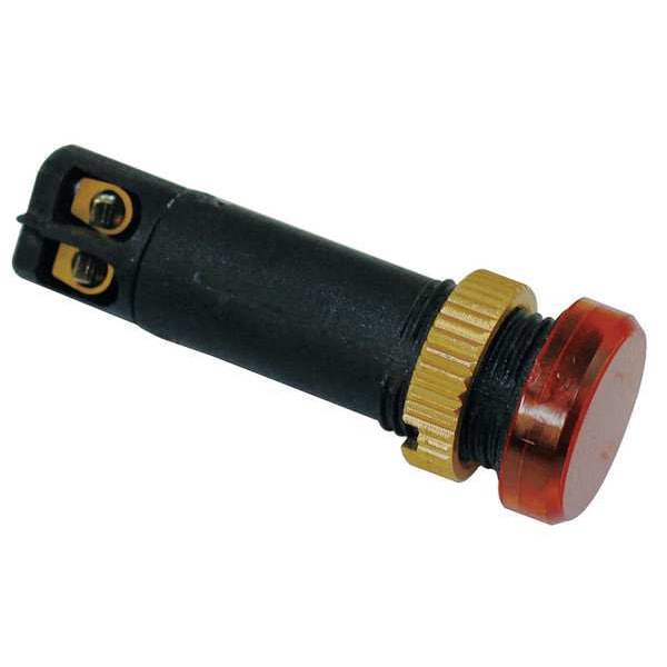 Raised Panel Light, LED, Nylon Body With Polycarbonate Lens and Brass Nut, Amber, Voltage 240V AC/DC, Size 12mm Mounting dia, Electrical Connection M2.5 Screw, Shape Round, Current Drawn 4.17 mA, Average Life 15,000 hr, IP Rating IP40, Panel Thickness 0.028 in to 0.110 in, Standards UL Listed