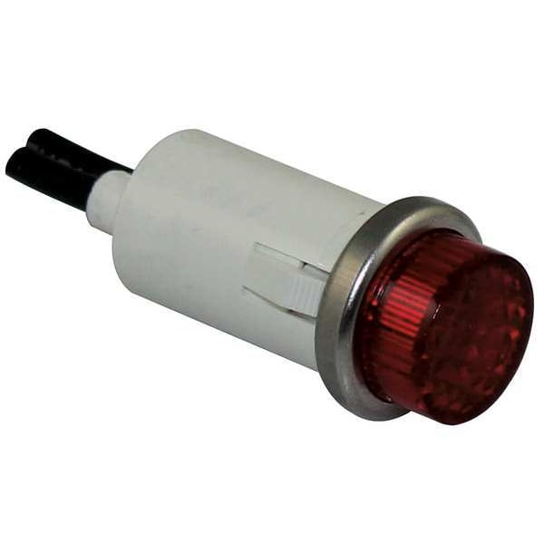 Raised Panel Light, LED, Nylon Body With Polycarbonate Lens and Stainless Steel Bezel, Red, Voltage 120V AC/DC, Size 1/2 in Mounting dia, Electrical Connection 6 in Wire Leads, Shape Round, Current Drawn 4.16 mA, Average Life 25,000 hr, IP Rating IP40, Panel Thickness 0.030 in to 0.093 in, Standards UL Listed