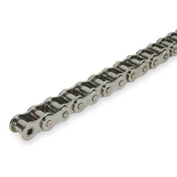 Roller Chain, Chain Construction Riveted Pin, Overall Length 10 ft, Material Steel, Chain Number 50, Chain Overall Width 0.86 in, Roller Diameter 13/32 in, Tensile Strength 4,880 lbf, Pitch 5/8 in, Number of Strands 1, Pin Contruction Riveted Pin, Inside Width 0.375 in, Series Standard Riveted, Working Load Limit 1,144 lb, Finish Nickel Plated, Heavy Series No, Maximum Operating Temperature 150 Degrees F, Minimum Operating Temperature 10 Degrees F, Pin Hole Diameter 0.2 in