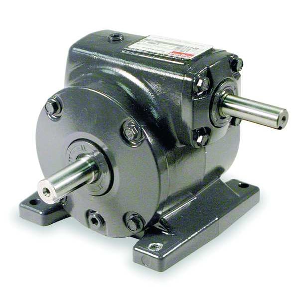 Speed Reducer, Input Connection Type Indirect Drive, Gear Type Worm, Output Shaft Type Round, Maximum Output Speed 45 RPM, Worm Center Distance 2.06 in, Gear Ratio 39:1, Rotation CW/CCW, Maximum Input Horsepower 0.5 hp, Maximum Output Torque 337 in-lb, Overhung Load Capacity 150 lb, Housing Material Cast Aluminum, Application Speed Reducer, Bearing Type Tapered Roller, Gear Material Hardened and Ground Steel, Housing Material Finish Powder Coated Epoxy Paint