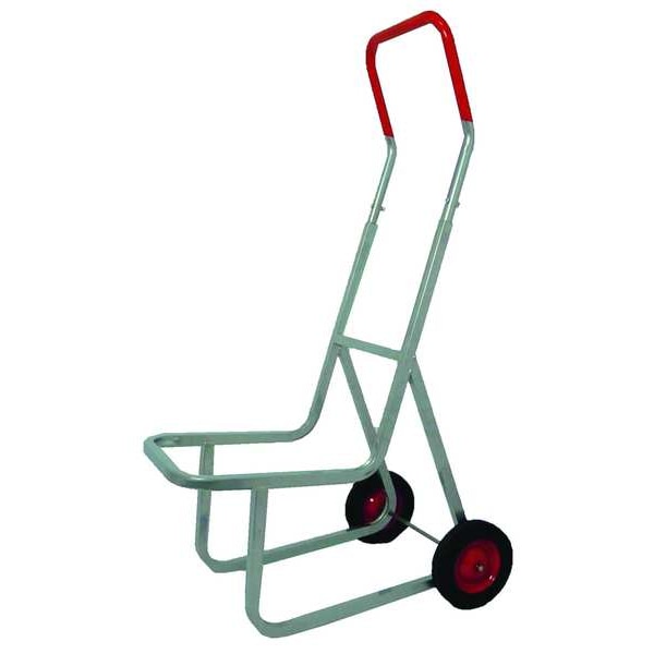 Stacking-Chair Hand Truck, Load Capacity 240 lb, For Chair Type Stacking Chairs, For Max. Number of Chairs 16, Overall Depth 33 in, Overall Height 48 in, Overall Width 10 1/2 in, Handle Type Continuous Frame Flow-Back, Wheel Dia. 8 in, Wheel Type Tread on Core