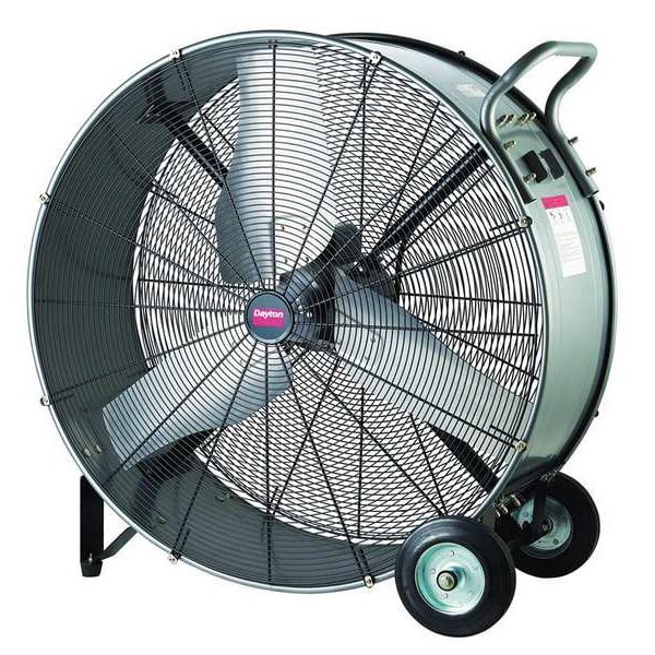 Corrosion-Resistant Industrial Fan, Blade Dia. 48 in, Mobile, Non-Oscillating, 1 Speeds, Voltage 120V AC, 1 Phase, CFM High 21,000, Air Velocity @ 20 Ft. 557 fpm, Motor HP 1 hp, Motor RPM 850, Operating Amps 8.7, Fan Mounting Location Floor, Fan Accessory Style Standard, Fan RPM 850, Sound Level 88 dBA, Max. Ambient Temp. 104 Degrees F, Hz 60 Hz, Watts 1000, Motor Type Permanent Split Capacitor, Drive Type Direct Drive, Outside Dia. 51-1/2 In., Height 52 in, Width 51 1/2 in, Max. Depth 21 In.