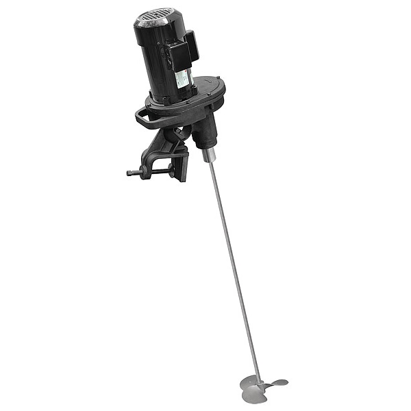 Tank Mixer, Maximum Motor Horsepower 1/2 hp, Compatible Viscosity Level High, Drive Style Gear, For Container Capacity 3,000 gal, For Container Type Tanks, Maximum Viscosity 15,000 cps, Minimum Mixing Speed 350 RPM, Mounting Location Top, Mounting Type Clamp, Number of Blades 3, Phase Single, Propeller Type Fixed, Shaft Length 48 in, Operating Voltage 115/230V AC, Rotation Right Hand, Pitch Type Machine Pitch, Pitch Angle 6 Degrees , Blade Diameter 12 in, Maximum Mixing Speed 350 RPM