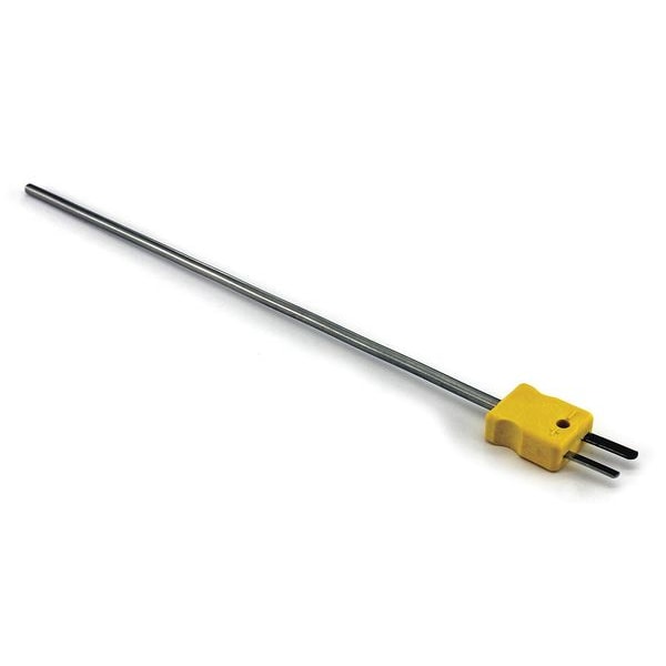 Thermocouple Probe, Type K, Ungrounded, For Application Air, Gas, Liquid, 1/4 in MNPT, 1/8 in MNPT, Mini Plug, Probe Size 1/8 in x 6 in, Cable Length 6 in, -325 Degrees to 2,280 Degrees F/-200 Degrees to 1,250 Degrees C, Thermocouple