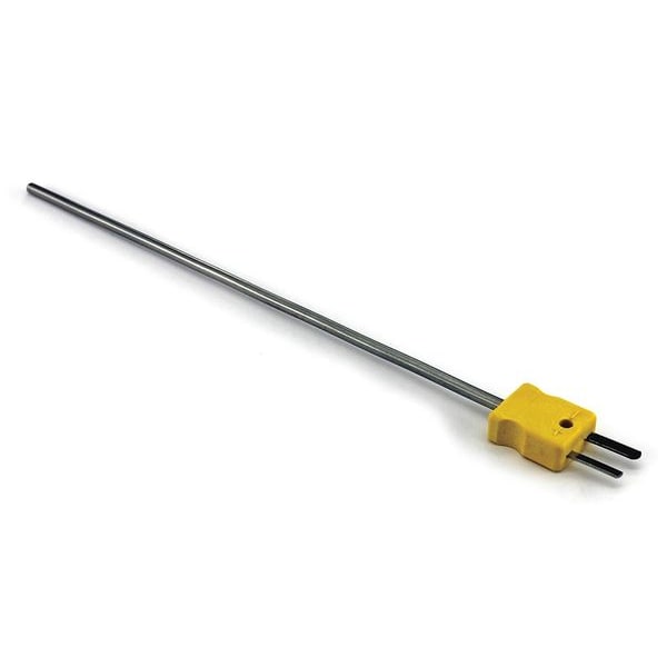 Thermocouple Probe, Type K, Grounded, For Application Air, Gas, Liquid, 1/4 in MNPT, 1/8 in MNPT, Mini Plug, Probe Size 1/8 in x 6 in, Cable Length 6 in, -325 Degrees to 2,280 Degrees F/-200 Degrees to 1,250 Degrees C, Thermocouple