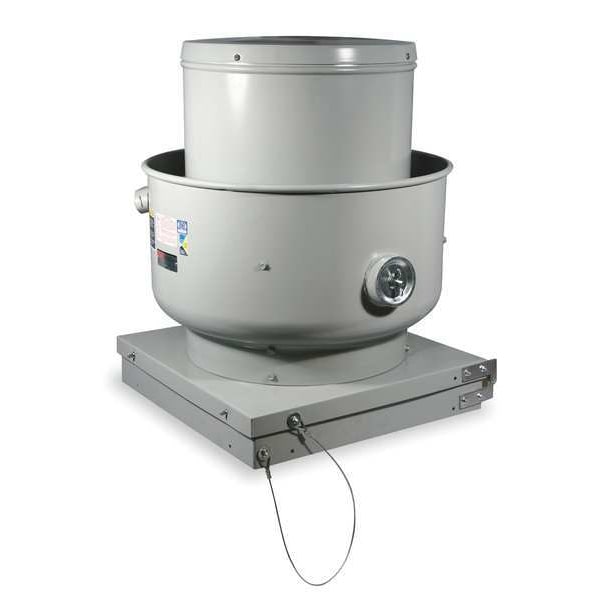 Centrifugal Upblast Roof Exhaust Fan, Drive Type Belt, Wheel Diameter 14 3/4 in, Base Diameter Not Applicable, Base Length 25 1/8 in, Base Width 25 1/8 in, Maximum Static Pressure 1 3/4 in wc, Assembly Unassembled, Housing Material Steel, Wheel Material Steel, Mounting Location Roof, Maximum Inlet Air Temperature 400 Degrees F, Standards AMCA Sound & Air, UL/cUL 762, Overall Height 36 1/4 in, Base Height 6.3 in
