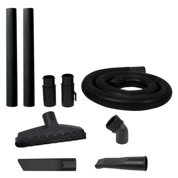 Vacuum Attachment Kit, For Hose Diameter 2 1/2 in, Includes (2) 20 in Plastic Extension Tubes, 14 in Floor Nozzle, 6 ft x 2 1/2 in Hose, Crevice Tool, Dusting Brush, For Vacuum Type Shop Vacuum, Fits Vacuum Brand Dayton, DeWalt, Stanley