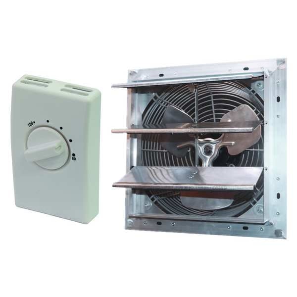 Attic Exhaust Fan, Control Type Thermostat, Blade Material Aluminum, Exhaust Airflow @ 0.000 in SP 844 cfm, Fire Safety Shut-Off No, High-Efficiency Motor No, Housing Material Aluminum, Includes Humidistat No, Includes Shutter Yes, Includes Thermostat Yes, Maximum Attic Area 1,600 sq ft, Motor Horsepower 1/30 hp, Mounting Location Gable, Nameplate Voltage 120V AC, Overall Height 15 1/4 in, Overall Length 8 in, Overall Width 15 1/4 in, Dome Shape Not Applicable, Dome Width Not Applicable