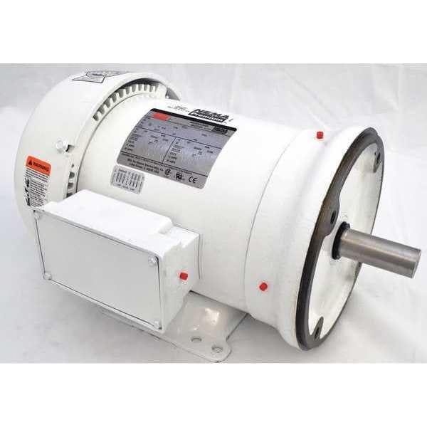 Washdown Motor, Three Phase, Motor Design Three-Phase, 5 hp HP, Nameplate RPM 1,755 RPM, Voltage 230/460V AC, Full Load Amps 12.5/6.2 A, 184TC Frame, 60/50 Hz Hz, Motor Service Factor 1.15, Motor Thermal Protection None, Ins. Class F, Max. Ambient Temp. 40 Degrees C, Duty Cycle Continuous, NEMA Design B, Motor Shaft Rotation CW/CCW, Motor Enclosure Design Totally Enclosed Fan Cooled, Motor Mounting Type C-Face, Rigid Base, Motor Mounting Position Horizontal, Motor Frame Material Steel