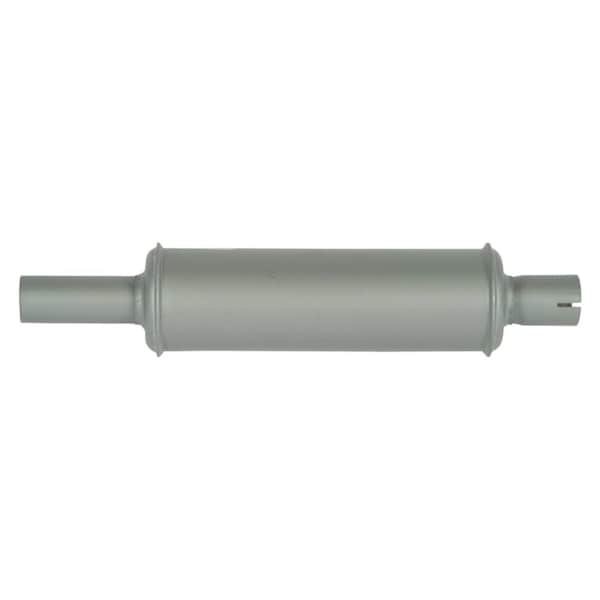 Specs: Description: Muffler , Inlet I.D.: 1-1/2" , Outlet O.D.: 1-1/2" , O/A Length: 17" , Inlet Length: 2-1/4" , Outlet Length: 4" , Shell Length: 10-1/4" , Notes: CUSTOM STANLEY DESIGN Compatible with/Replacement For: Ford/New Holland: FO-11 Replacement for: Ford/New Holland 2N, 8N, 9N