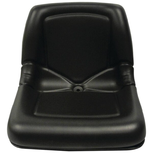 Description : Low Back Equipment Seat , Note : Universal Black Medium Back 15 1/2" (395mm) equipment seat, Plastic Pan 17 3/4" (450mm) wide, with Drain, multiple threaded mounting holes. Universal Products
