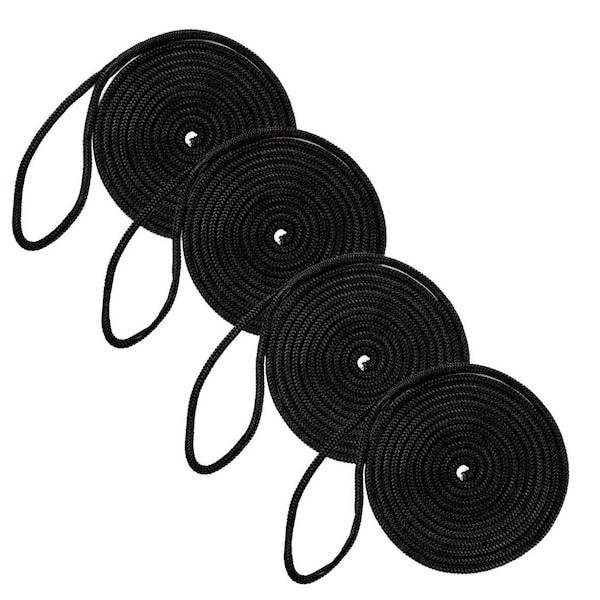 1/2in X 20' Double-Braided Nylon Dock Line, Black, 4PK