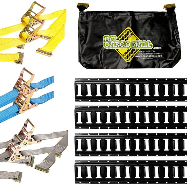 4' Black E-Track Kit - 4 Rails + Ratchet Straps + E-Track Bag
