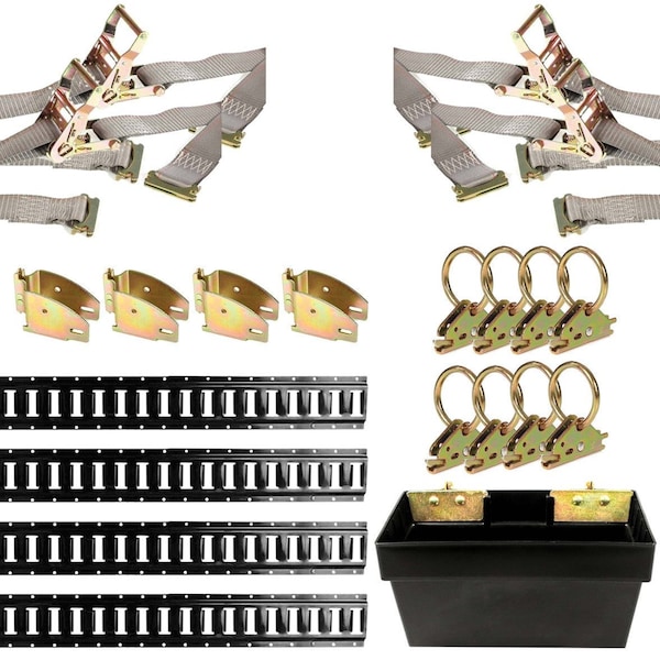 5' Black E-Track Kit - 4 Rails + Tie-down Accessories + E-Track Bin