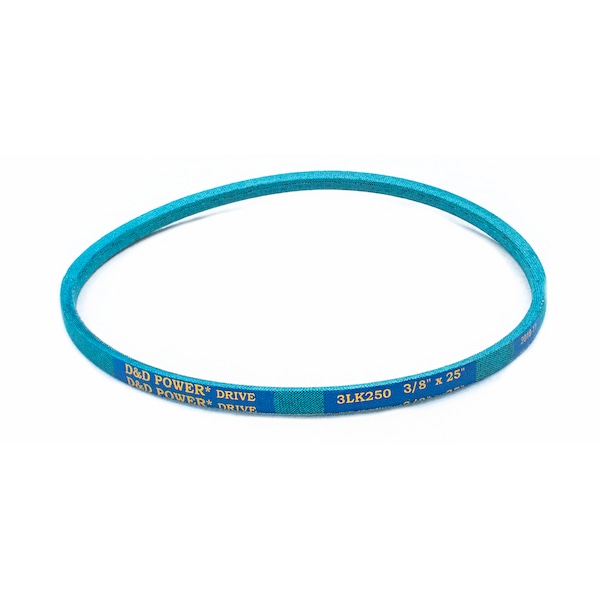 Belt, 3LK, 0.375 x 25in OC D&D DURA-ULTIMATE-DW-BLADE belts meet or exceed USA RMA published ratings levels. They are manufactured to perform at higher levels than all major US Manufacturer’s belts of the same type. DURA-ULTIMATE-DW-BLADE belts are designed for lawn and garden equipment and any abusive drive application. They are manufactured with an outer dry fabric wrap for higher heat and oil resistance and also clutching applications. The tensile cords are manufactured with the highest quality Kevlar. These high quality cords are extremely resistant to severe repeated shock loads. D&D DURA-ULTIMATE DW-BLADE belts have been proven over and over again to exceed any OEM performance and quality.