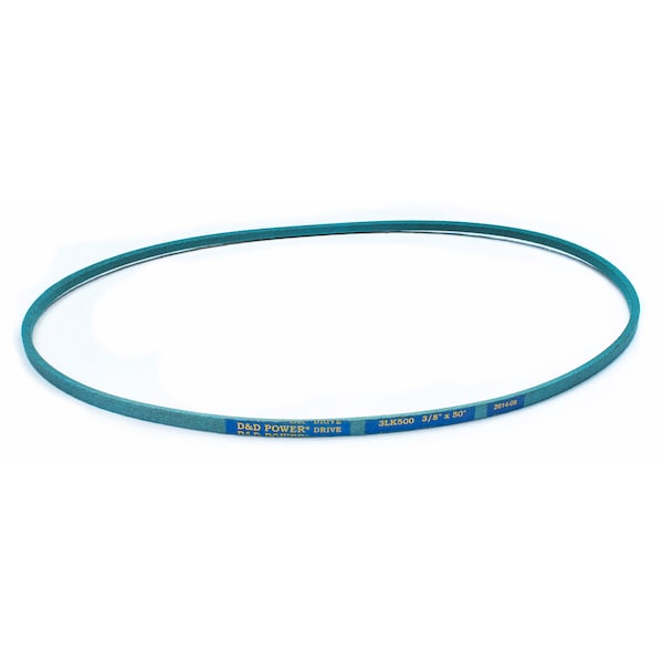 Belt, 3LK, 0.375 x 50in OC D&D DURA-ULTIMATE-DW-BLADE belts meet or exceed USA RMA published ratings levels. They are manufactured to perform at higher levels than all major US Manufacturer’s belts of the same type. DURA-ULTIMATE-DW-BLADE belts are designed for lawn and garden equipment and any abusive drive application. They are manufactured with an outer dry fabric wrap for higher heat and oil resistance and also clutching applications. The tensile cords are manufactured with the highest quality Kevlar. These high quality cords are extremely resistant to severe repeated shock loads. D&D DURA-ULTIMATE DW-BLADE belts have been proven over and over again to exceed any OEM performance and quality.