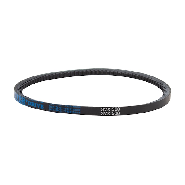 3VX500 Cogged, Wedge V-Belt, 50 in Outside Length, 3/8 in Top Width, 5/16 in Thickness, 1 Ribs