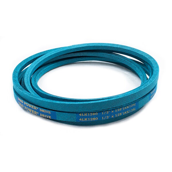 Belt, 4LK, 0.5 x 128in OC (AK126) D&D DURA-ULTIMATE-DW-BLADE belts meet or exceed USA RMA published ratings levels. They are manufactured to perform at higher levels than all major US Manufacturer’s belts of the same type. DURA-ULTIMATE-DW-BLADE belts are designed for lawn and garden equipment and any abusive drive application. They are manufactured with an outer dry fabric wrap for higher heat and oil resistance and also clutching applications. The tensile cords are manufactured with the highest quality Kevlar. These high quality cords are extremely resistant to severe repeated shock loads. D&D DURA-ULTIMATE DW-BLADE belts have been proven over and over again to exceed any OEM performance and quality.
