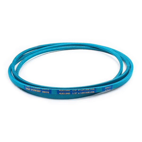 Belt, 4LK, 0.5 x 134in OC (AK132) D&D DURA-ULTIMATE-DW-BLADE belts meet or exceed USA RMA published ratings levels. They are manufactured to perform at higher levels than all major US Manufacturer’s belts of the same type. DURA-ULTIMATE-DW-BLADE belts are designed for lawn and garden equipment and any abusive drive application. They are manufactured with an outer dry fabric wrap for higher heat and oil resistance and also clutching applications. The tensile cords are manufactured with the highest quality Kevlar. These high quality cords are extremely resistant to severe repeated shock loads. D&D DURA-ULTIMATE DW-BLADE belts have been proven over and over again to exceed any OEM performance and quality.