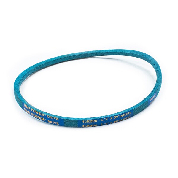 Belt, 4LK, 0.5 x 29in OC (AK27) D&D DURA-ULTIMATE-DW-BLADE belts meet or exceed USA RMA published ratings levels. They are manufactured to perform at higher levels than all major US Manufacturer’s belts of the same type. DURA-ULTIMATE-DW-BLADE belts are designed for lawn and garden equipment and any abusive drive application. They are manufactured with an outer dry fabric wrap for higher heat and oil resistance and also clutching applications. The tensile cords are manufactured with the highest quality Kevlar. These high quality cords are extremely resistant to severe repeated shock loads. D&D DURA-ULTIMATE DW-BLADE belts have been proven over and over again to exceed any OEM performance and quality.