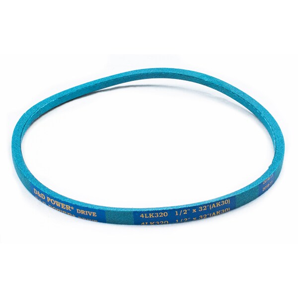 Belt, 4LK, 0.5 x 32in OC (AK30) D&D DURA-ULTIMATE-DW-BLADE belts meet or exceed USA RMA published ratings levels. They are manufactured to perform at higher levels than all major US Manufacturer’s belts of the same type. DURA-ULTIMATE-DW-BLADE belts are designed for lawn and garden equipment and any abusive drive application. They are manufactured with an outer dry fabric wrap for higher heat and oil resistance and also clutching applications. The tensile cords are manufactured with the highest quality Kevlar. These high quality cords are extremely resistant to severe repeated shock loads. D&D DURA-ULTIMATE DW-BLADE belts have been proven over and over again to exceed any OEM performance and quality.