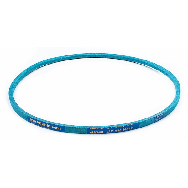 Belt, 4LK, 0.5 x 44in OC (AK42) D&D DURA-ULTIMATE-DW-BLADE belts meet or exceed USA RMA published ratings levels. They are manufactured to perform at higher levels than all major US Manufacturer’s belts of the same type. DURA-ULTIMATE-DW-BLADE belts are designed for lawn and garden equipment and any abusive drive application. They are manufactured with an outer dry fabric wrap for higher heat and oil resistance and also clutching applications. The tensile cords are manufactured with the highest quality Kevlar. These high quality cords are extremely resistant to severe repeated shock loads. D&D DURA-ULTIMATE DW-BLADE belts have been proven over and over again to exceed any OEM performance and quality.