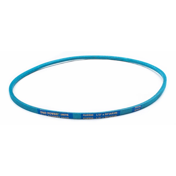 Belt, 4LK, 0.5 x 50in OC (AK48) D&D DURA-ULTIMATE-DW-BLADE belts meet or exceed USA RMA published ratings levels. They are manufactured to perform at higher levels than all major US Manufacturer’s belts of the same type. DURA-ULTIMATE-DW-BLADE belts are designed for lawn and garden equipment and any abusive drive application. They are manufactured with an outer dry fabric wrap for higher heat and oil resistance and also clutching applications. The tensile cords are manufactured with the highest quality Kevlar. These high quality cords are extremely resistant to severe repeated shock loads. D&D DURA-ULTIMATE DW-BLADE belts have been proven over and over again to exceed any OEM performance and quality.
