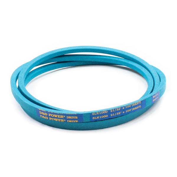Belt, 5LK, 0.625 x 100in OC, (BK97) D&D DURA-ULTIMATE-DW-BLADE belts meet or exceed USA RMA published ratings levels. They are manufactured to perform at higher levels than all major US Manufacturer’s belts of the same type. DURA-ULTIMATE-DW-BLADE belts are designed for lawn and garden equipment and any abusive drive application. They are manufactured with an outer dry fabric wrap for higher heat and oil resistance and also clutching applications. The tensile cords are manufactured with the highest quality Kevlar. These high quality cords are extremely resistant to severe repeated shock loads. D&D DURA-ULTIMATE DW-BLADE belts have been proven over and over again to exceed any OEM performance and quality.