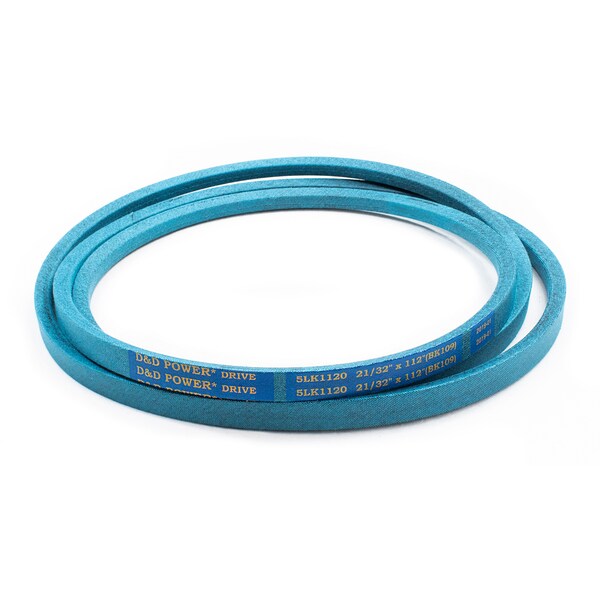 Belt, 5LK, 0.625 x 112in OC, (BK109) D&D DURA-ULTIMATE-DW-BLADE belts meet or exceed USA RMA published ratings levels. They are manufactured to perform at higher levels than all major US Manufacturer’s belts of the same type. DURA-ULTIMATE-DW-BLADE belts are designed for lawn and garden equipment and any abusive drive application. They are manufactured with an outer dry fabric wrap for higher heat and oil resistance and also clutching applications. The tensile cords are manufactured with the highest quality Kevlar. These high quality cords are extremely resistant to severe repeated shock loads. D&D DURA-ULTIMATE DW-BLADE belts have been proven over and over again to exceed any OEM performance and quality.