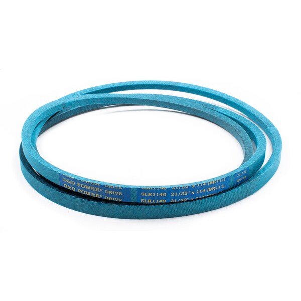 Belt, 5LK, 0.625 x 114in OC, (BK111) D&D DURA-ULTIMATE-DW-BLADE belts meet or exceed USA RMA published ratings levels. They are manufactured to perform at higher levels than all major US Manufacturer’s belts of the same type. DURA-ULTIMATE-DW-BLADE belts are designed for lawn and garden equipment and any abusive drive application. They are manufactured with an outer dry fabric wrap for higher heat and oil resistance and also clutching applications. The tensile cords are manufactured with the highest quality Kevlar. These high quality cords are extremely resistant to severe repeated shock loads. D&D DURA-ULTIMATE DW-BLADE belts have been proven over and over again to exceed any OEM performance and quality.