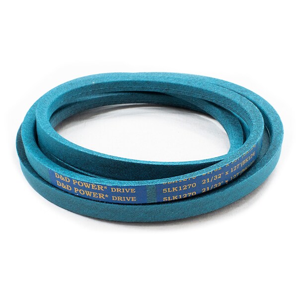 Belt, 5LK, 0.625 x 127in OC, (BK124) D&D DURA-ULTIMATE-DW-BLADE belts meet or exceed USA RMA published ratings levels. They are manufactured to perform at higher levels than all major US Manufacturer’s belts of the same type. DURA-ULTIMATE-DW-BLADE belts are designed for lawn and garden equipment and any abusive drive application. They are manufactured with an outer dry fabric wrap for higher heat and oil resistance and also clutching applications. The tensile cords are manufactured with the highest quality Kevlar. These high quality cords are extremely resistant to severe repeated shock loads. D&D DURA-ULTIMATE DW-BLADE belts have been proven over and over again to exceed any OEM performance and quality.