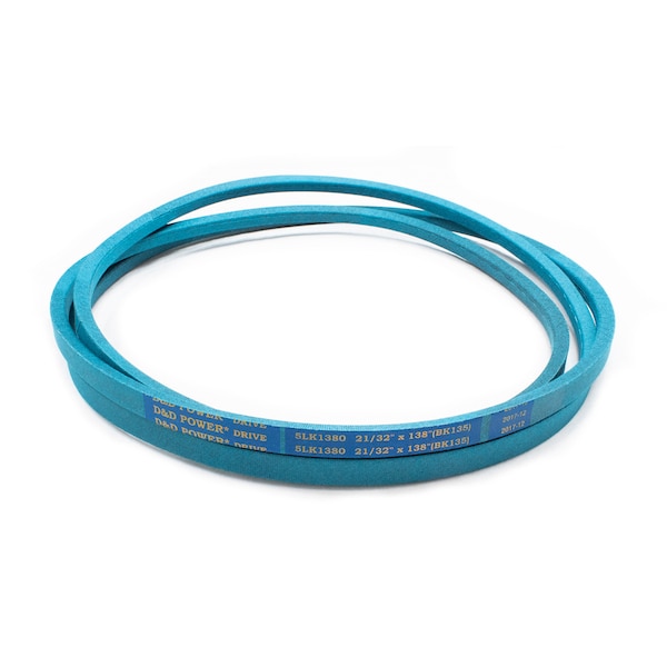 Belt, 5LK, 0.625 x 138in OC, (BK135) D&D DURA-ULTIMATE-DW-BLADE belts meet or exceed USA RMA published ratings levels. They are manufactured to perform at higher levels than all major US Manufacturer’s belts of the same type. DURA-ULTIMATE-DW-BLADE belts are designed for lawn and garden equipment and any abusive drive application. They are manufactured with an outer dry fabric wrap for higher heat and oil resistance and also clutching applications. The tensile cords are manufactured with the highest quality Kevlar. These high quality cords are extremely resistant to severe repeated shock loads. D&D DURA-ULTIMATE DW-BLADE belts have been proven over and over again to exceed any OEM performance and quality.