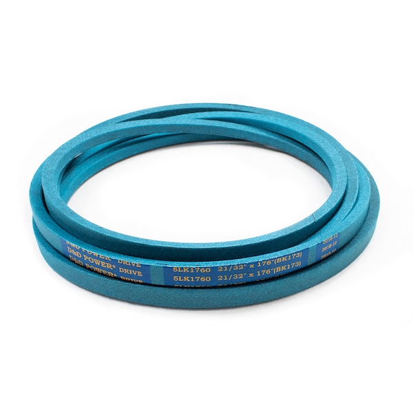 Belt, 5LK, 0.625 x 176in OC, (BK173) D&D DURA-ULTIMATE-DW-BLADE belts meet or exceed USA RMA published ratings levels. They are manufactured to perform at higher levels than all major US Manufacturer’s belts of the same type. DURA-ULTIMATE-DW-BLADE belts are designed for lawn and garden equipment and any abusive drive application. They are manufactured with an outer dry fabric wrap for higher heat and oil resistance and also clutching applications. The tensile cords are manufactured with the highest quality Kevlar. These high quality cords are extremely resistant to severe repeated shock loads. D&D DURA-ULTIMATE DW-BLADE belts have been proven over and over again to exceed any OEM performance and quality.