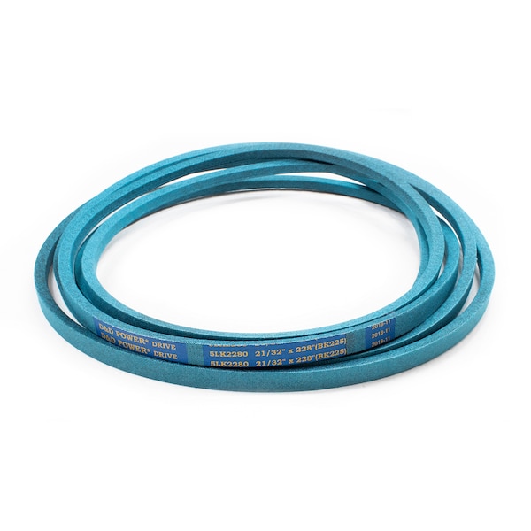 Belt, 5LK, 0.625 x 228in OC, (BK225) D&D DURA-ULTIMATE-DW-BLADE belts meet or exceed USA RMA published ratings levels. They are manufactured to perform at higher levels than all major US Manufacturer’s belts of the same type. DURA-ULTIMATE-DW-BLADE belts are designed for lawn and garden equipment and any abusive drive application. They are manufactured with an outer dry fabric wrap for higher heat and oil resistance and also clutching applications. The tensile cords are manufactured with the highest quality Kevlar. These high quality cords are extremely resistant to severe repeated shock loads. D&D DURA-ULTIMATE DW-BLADE belts have been proven over and over again to exceed any OEM performance and quality.