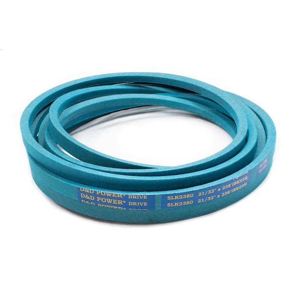 Belt, 5LK, 0.625 x 238in OC, (BK235) D&D DURA-ULTIMATE-DW-BLADE belts meet or exceed USA RMA published ratings levels. They are manufactured to perform at higher levels than all major US Manufacturer’s belts of the same type. DURA-ULTIMATE-DW-BLADE belts are designed for lawn and garden equipment and any abusive drive application. They are manufactured with an outer dry fabric wrap for higher heat and oil resistance and also clutching applications. The tensile cords are manufactured with the highest quality Kevlar. These high quality cords are extremely resistant to severe repeated shock loads. D&D DURA-ULTIMATE DW-BLADE belts have been proven over and over again to exceed any OEM performance and quality.