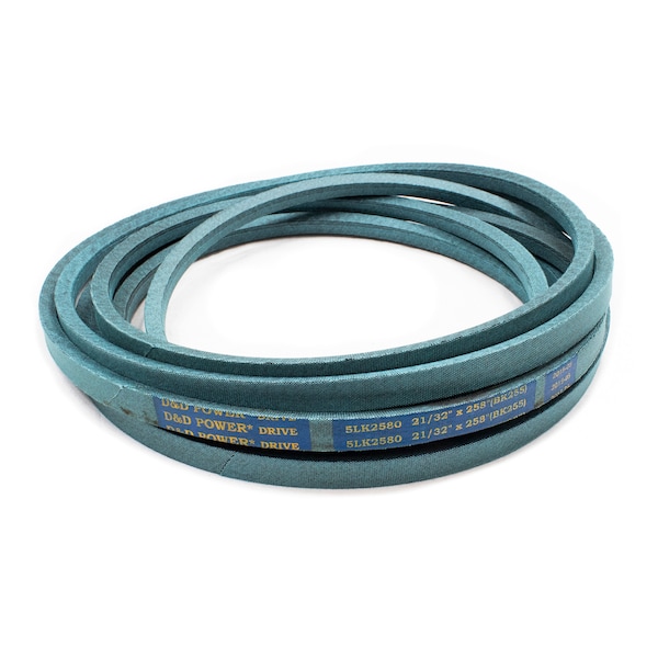 Belt, 5LK, 0.625 x 258in OC, (BK255) D&D DURA-ULTIMATE-DW-BLADE belts meet or exceed USA RMA published ratings levels. They are manufactured to perform at higher levels than all major US Manufacturer’s belts of the same type. DURA-ULTIMATE-DW-BLADE belts are designed for lawn and garden equipment and any abusive drive application. They are manufactured with an outer dry fabric wrap for higher heat and oil resistance and also clutching applications. The tensile cords are manufactured with the highest quality Kevlar. These high quality cords are extremely resistant to severe repeated shock loads. D&D DURA-ULTIMATE DW-BLADE belts have been proven over and over again to exceed any OEM performance and quality.