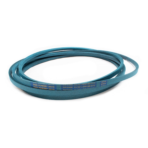 Belt, 5LK, 0.625 x 260in OC, (BK257) D&D DURA-ULTIMATE-DW-BLADE belts meet or exceed USA RMA published ratings levels. They are manufactured to perform at higher levels than all major US Manufacturer’s belts of the same type. DURA-ULTIMATE-DW-BLADE belts are designed for lawn and garden equipment and any abusive drive application. They are manufactured with an outer dry fabric wrap for higher heat and oil resistance and also clutching applications. The tensile cords are manufactured with the highest quality Kevlar. These high quality cords are extremely resistant to severe repeated shock loads. D&D DURA-ULTIMATE DW-BLADE belts have been proven over and over again to exceed any OEM performance and quality.