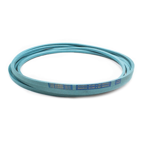 Belt, 5LK, 0.625 x 284in OC, (BK281) D&D DURA-ULTIMATE-DW-BLADE belts meet or exceed USA RMA published ratings levels. They are manufactured to perform at higher levels than all major US Manufacturer’s belts of the same type. DURA-ULTIMATE-DW-BLADE belts are designed for lawn and garden equipment and any abusive drive application. They are manufactured with an outer dry fabric wrap for higher heat and oil resistance and also clutching applications. The tensile cords are manufactured with the highest quality Kevlar. These high quality cords are extremely resistant to severe repeated shock loads. D&D DURA-ULTIMATE DW-BLADE belts have been proven over and over again to exceed any OEM performance and quality.