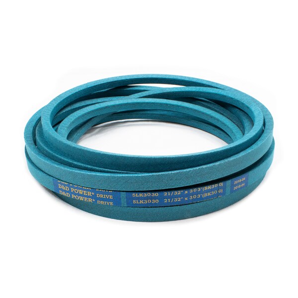 Belt, 5LK, 0.625 x 303in OC, (BK300) D&D DURA-ULTIMATE-DW-BLADE belts meet or exceed USA RMA published ratings levels. They are manufactured to perform at higher levels than all major US Manufacturer’s belts of the same type. DURA-ULTIMATE-DW-BLADE belts are designed for lawn and garden equipment and any abusive drive application. They are manufactured with an outer dry fabric wrap for higher heat and oil resistance and also clutching applications. The tensile cords are manufactured with the highest quality Kevlar. These high quality cords are extremely resistant to severe repeated shock loads. D&D DURA-ULTIMATE DW-BLADE belts have been proven over and over again to exceed any OEM performance and quality.