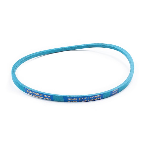 Belt, 5LK, 0.625 x 43in OC, (BK40) D&D DURA-ULTIMATE-DW-BLADE belts meet or exceed USA RMA published ratings levels. They are manufactured to perform at higher levels than all major US Manufacturer’s belts of the same type. DURA-ULTIMATE-DW-BLADE belts are designed for lawn and garden equipment and any abusive drive application. They are manufactured with an outer dry fabric wrap for higher heat and oil resistance and also clutching applications. The tensile cords are manufactured with the highest quality Kevlar. These high quality cords are extremely resistant to severe repeated shock loads. D&D DURA-ULTIMATE DW-BLADE belts have been proven over and over again to exceed any OEM performance and quality.